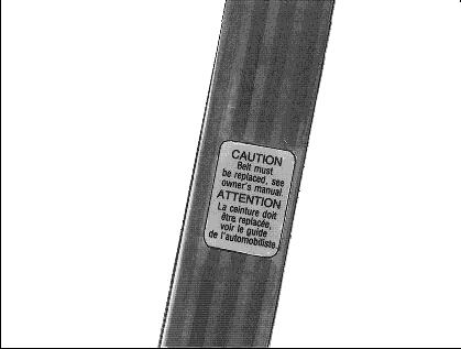If you ever see a label on the driver's safety belt that says to replace the belt, be sure to do so. Then the new belt will be there to help protect you in a collision. You would see this label on the belt near the latch plate.