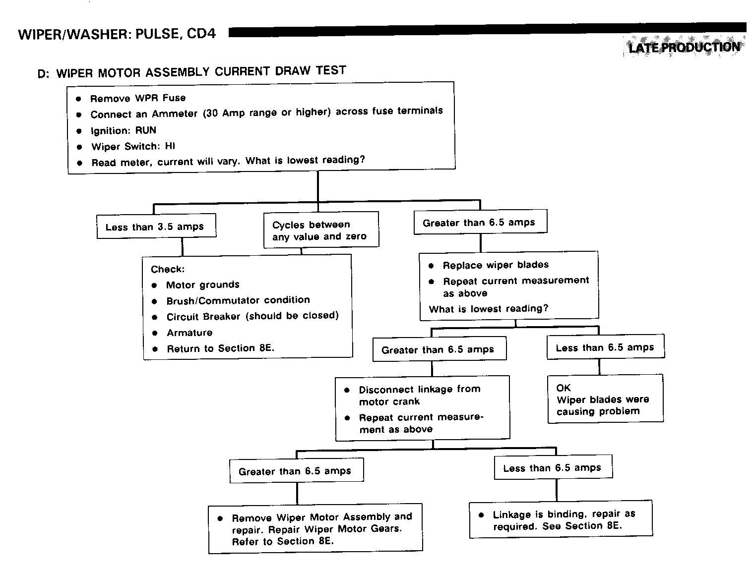 *If all measurements are correct and the Wiper Motor is on all the time, replace the Cover Assembly. Refer to Section 8E. Otherwise return to the Symptom Table.